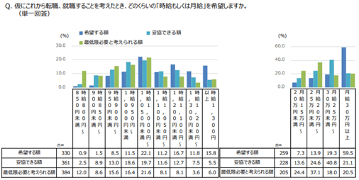 Q 仮にこれから転職、就職することを考えたとき、どのくらいの「時給もしくは月給」を希望しますか(単一回答)